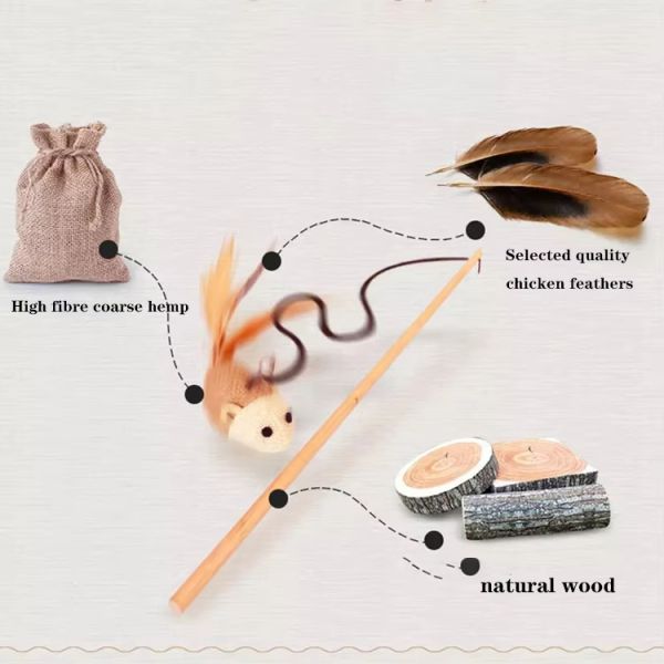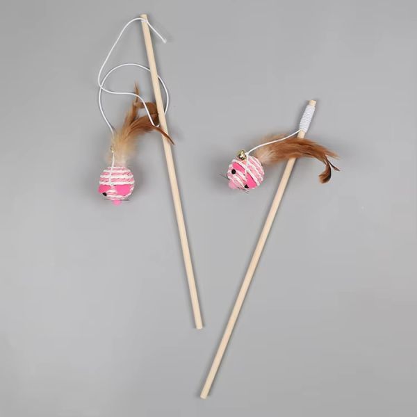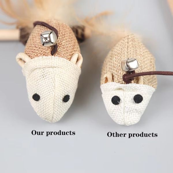 Linen Pet Training Products Mouse Shaped Cat Toy Feather Wand Interactive Images |